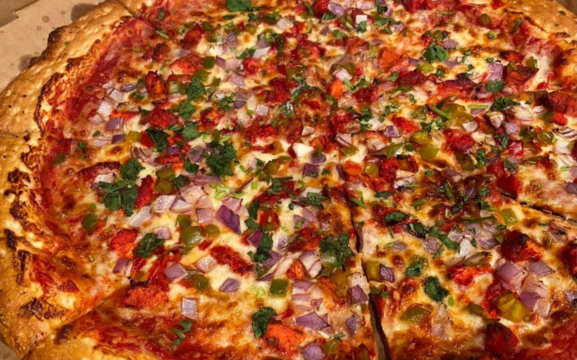 A fantastic blend of traditional indian flavors on a classic pizza pie. Delicious slices with exceptional service to match. Highly recommend the Achari Paneer Pizza!! 🤩🔥